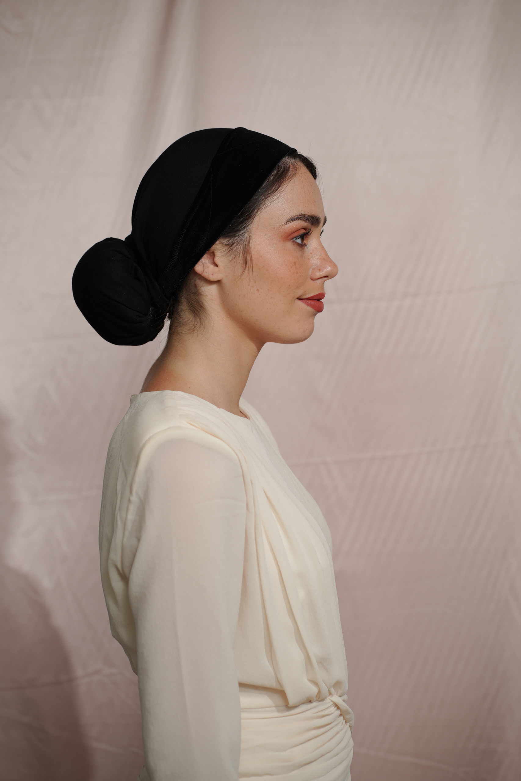 It also includes a non-slip velvet band for ideal support and closes with an adjustable system (elastic and button) that perfectly fits your head size.