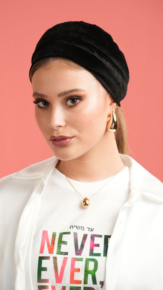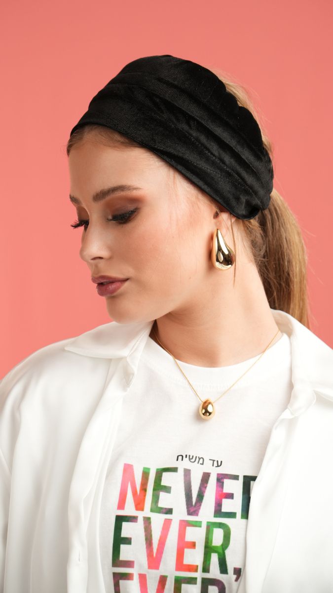 A lightweight summer Bobo made with a non-slip band to keep it in place and a cotton back pocket (which can be opened and closed with snaps) filled with sponge, allowing you to adjust the volume to create a ponytail shape.