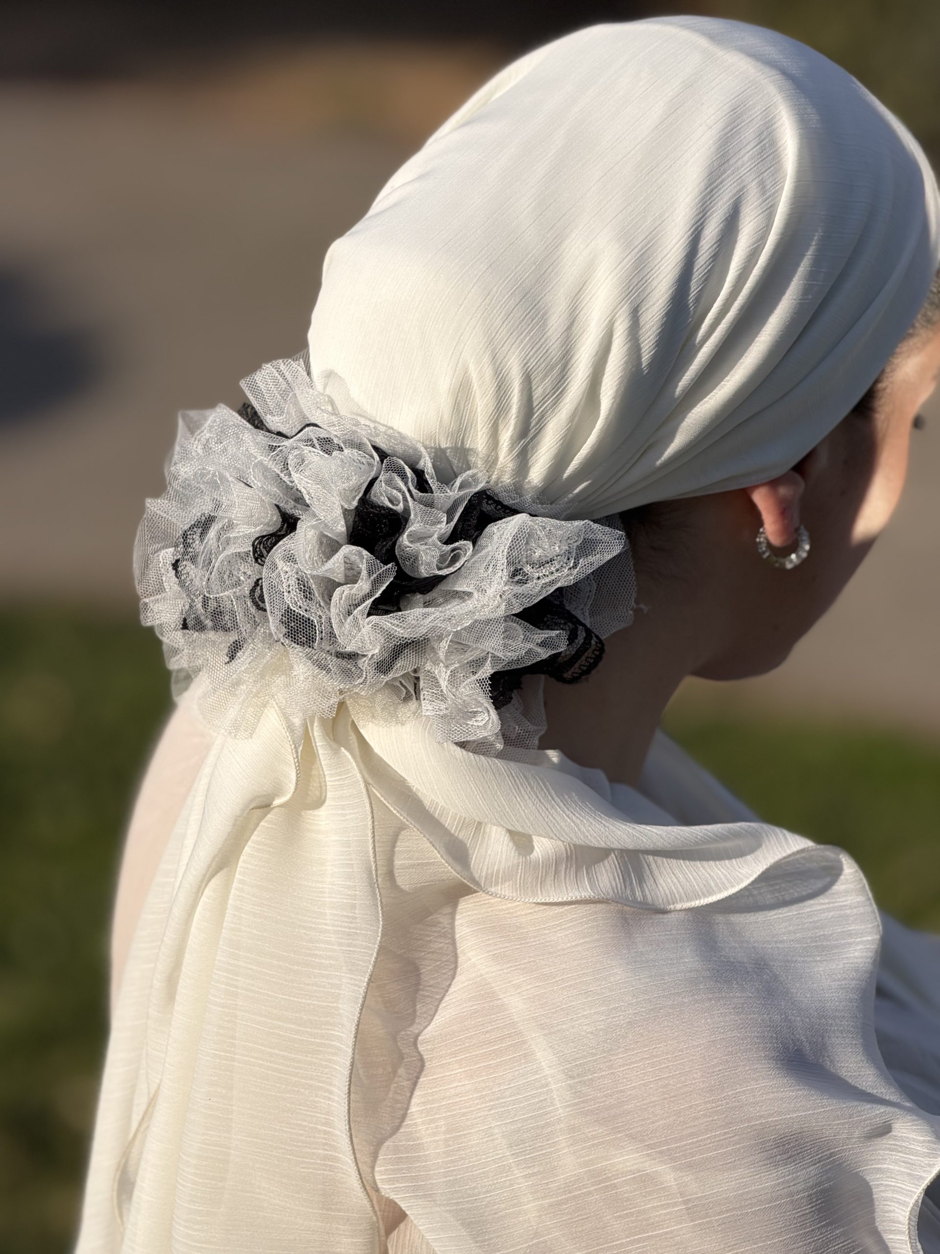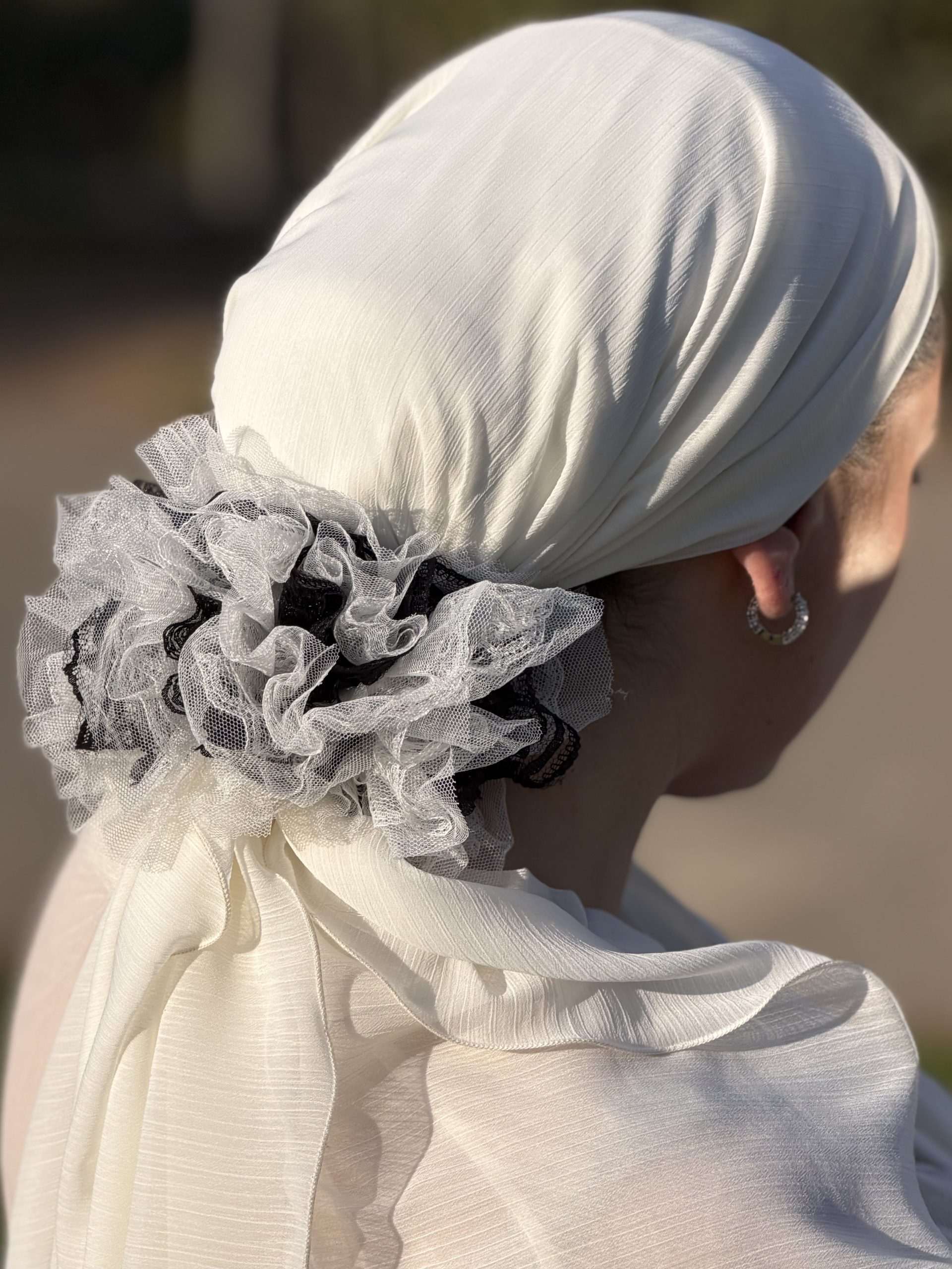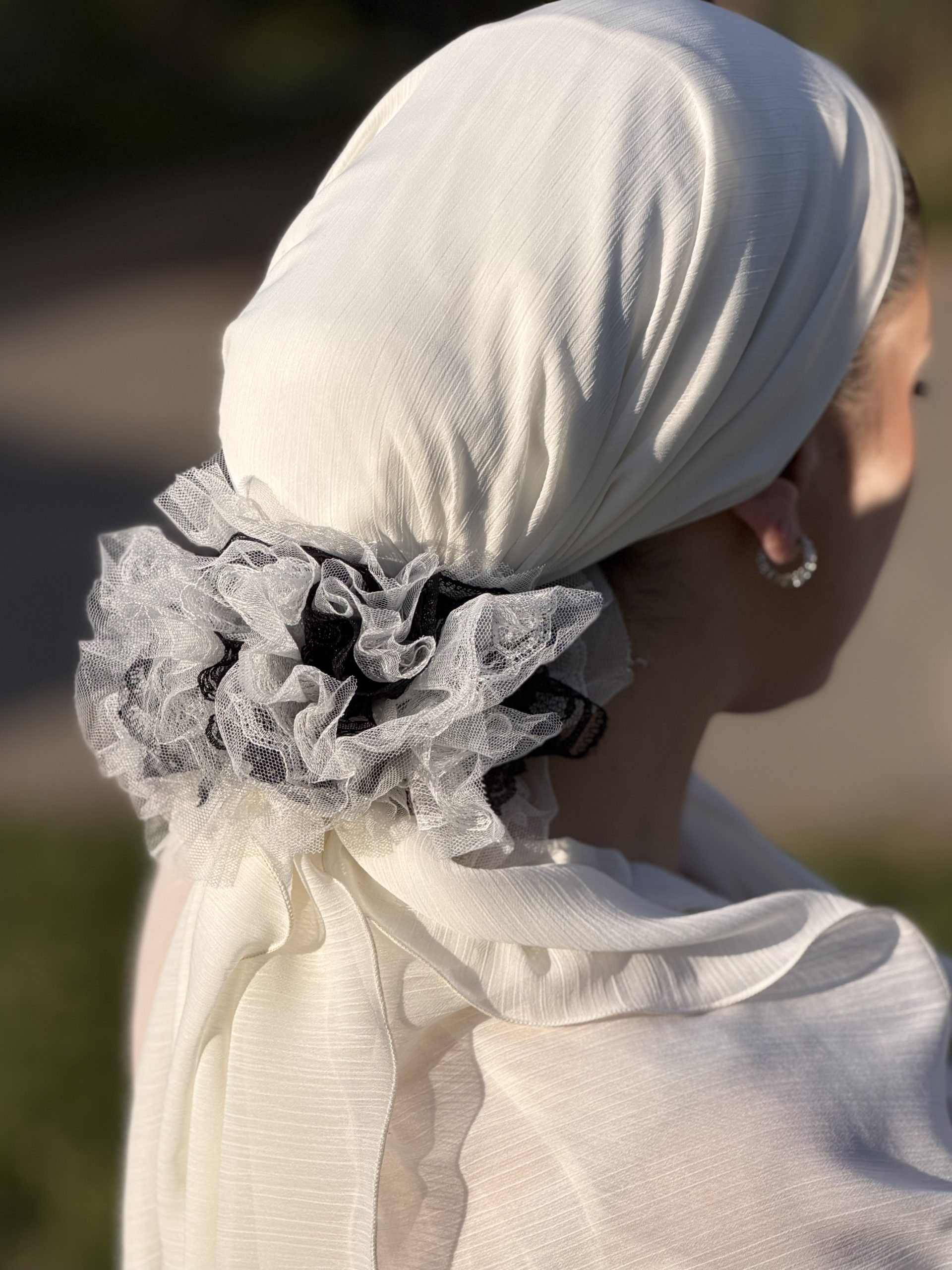 It’s made of an elastic band and a flower.