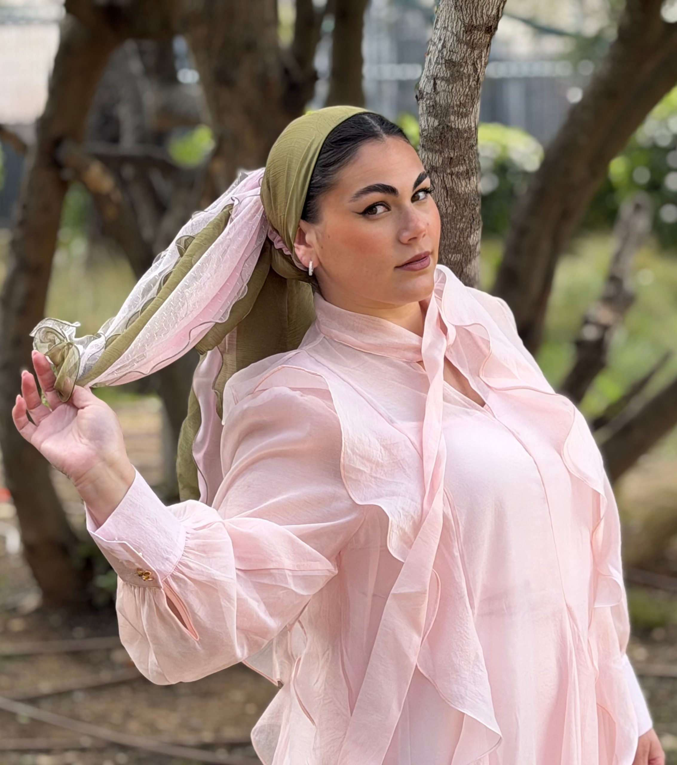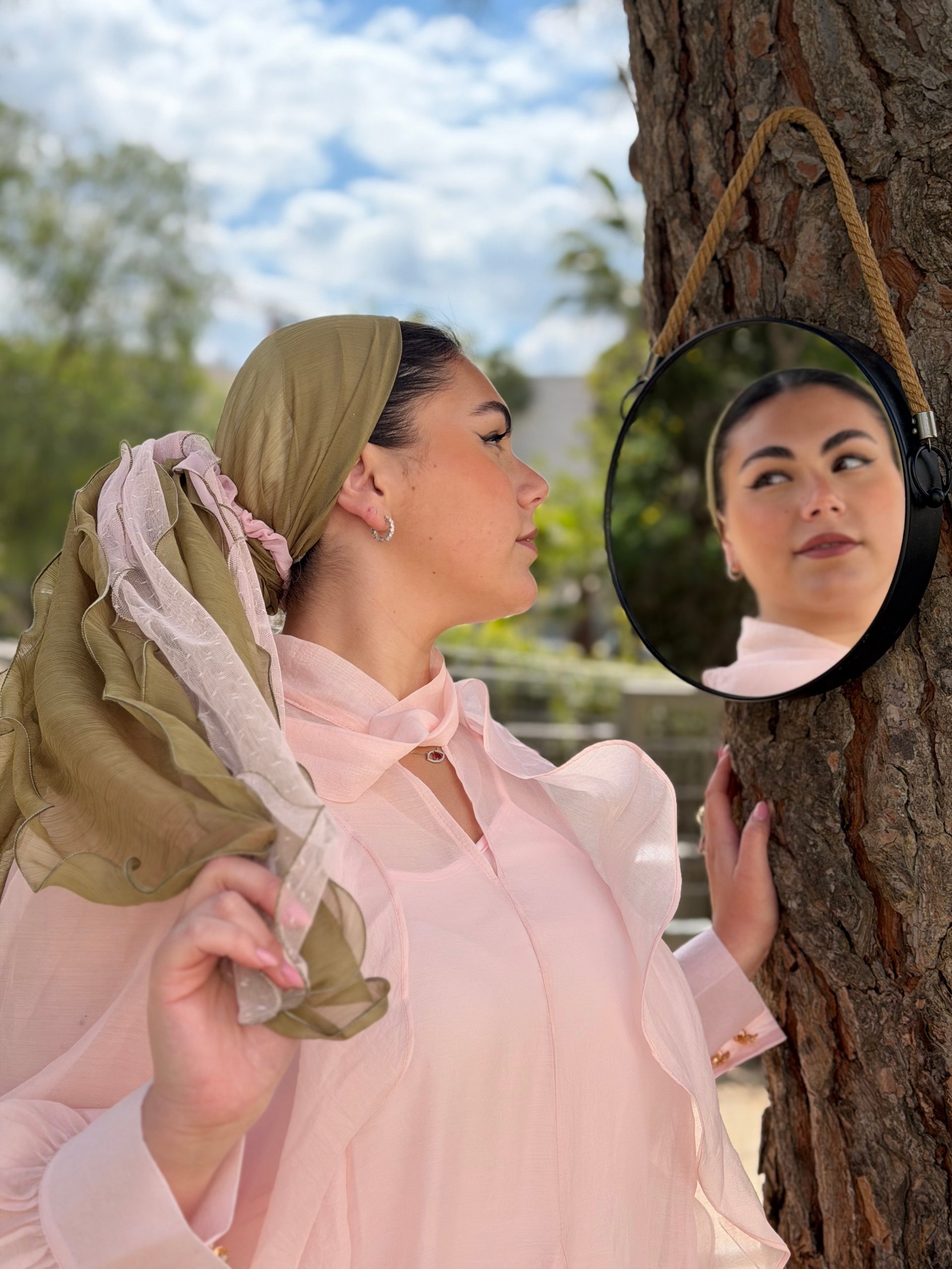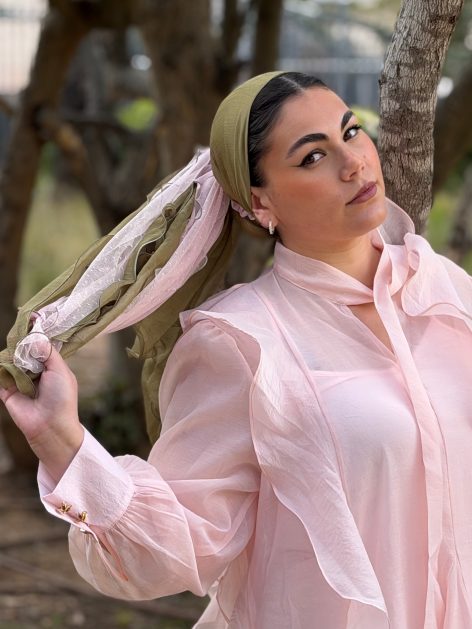 Here the model is wearing the “Cinderella” scarve.